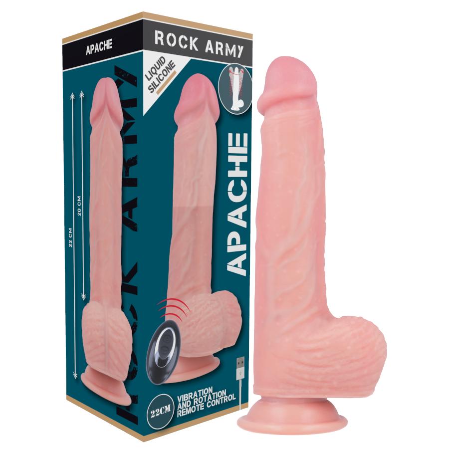 Apache zawiera silnik o dużej mocy, który maksymalnie uzupełnia realistyczne wrażenia, a za pomocą pilota zdalnego sterowania Apache jest szczytem linii RockArmy, diamentem dla miłośników seksu i rzeczywistości.